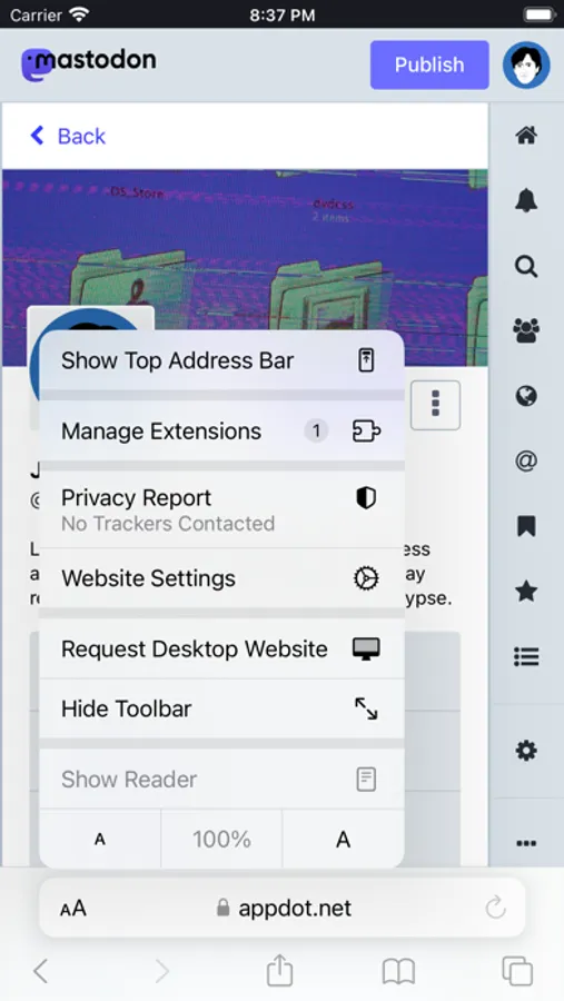 Just click the extension icon in the Safari toolbar to open a Mastodon page from another instance in your own instance. This makes it a lot easier to follow new accounts on Mastodon!