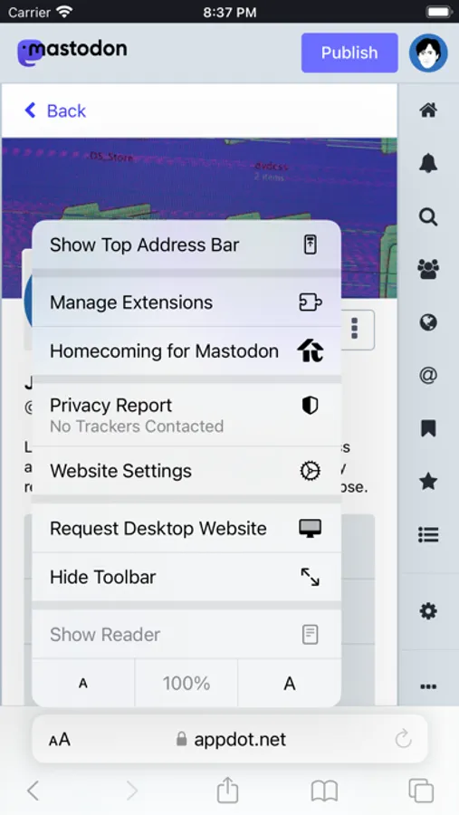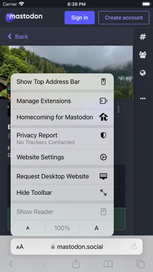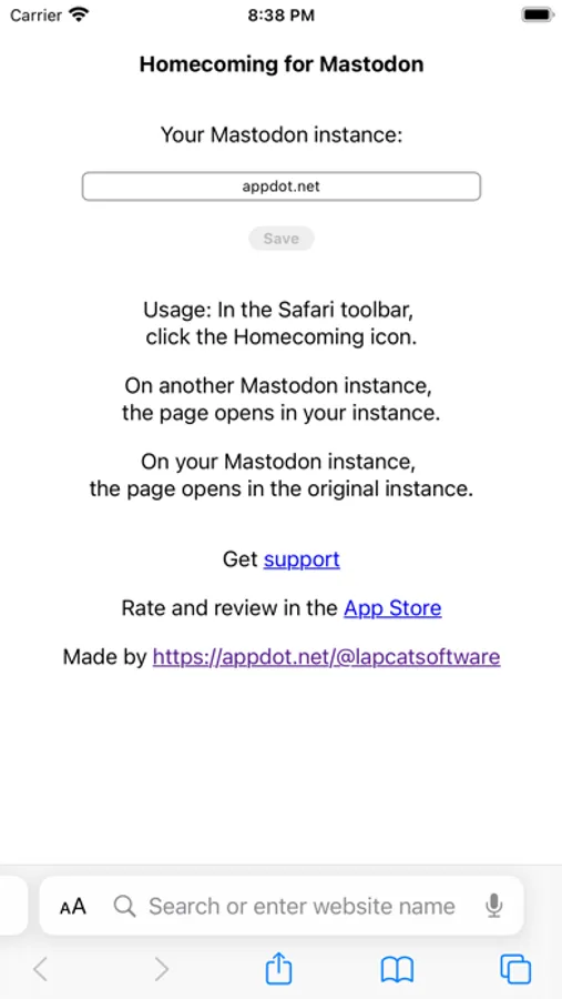 Homecoming for Mastodon is a Safari extension that makes it easy to open Mastodon pages in different instances.