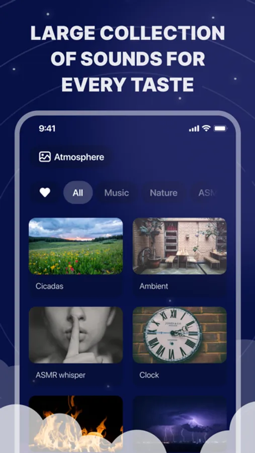 - ASMR sounds and white noise;