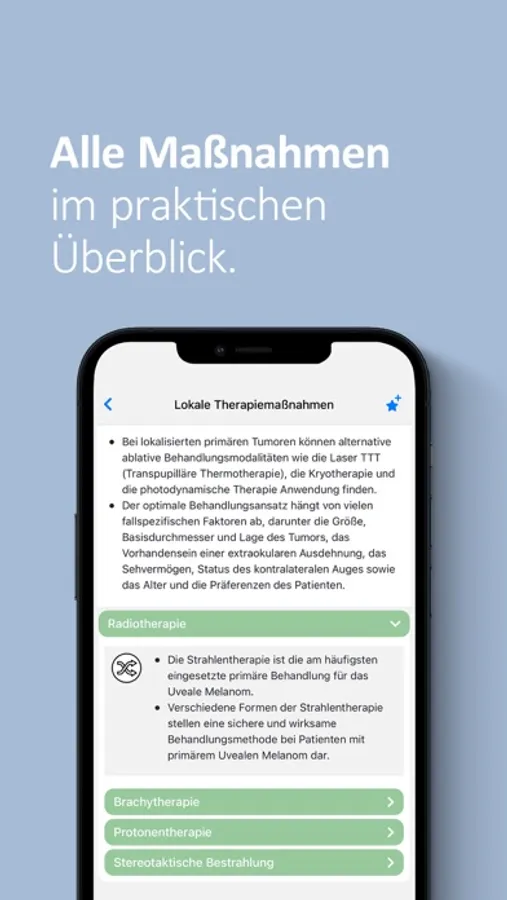 Die App dient ausschließlich als Informationsgrundlage für die Behandlung des Uvealen Melanoms.
