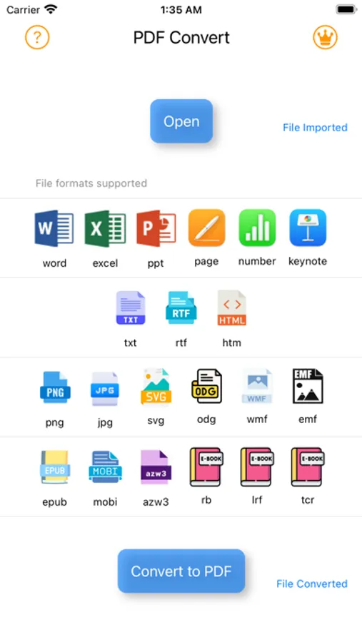 PDF File Convert, common office document formats, image formats, e-books and other files to PDF files.