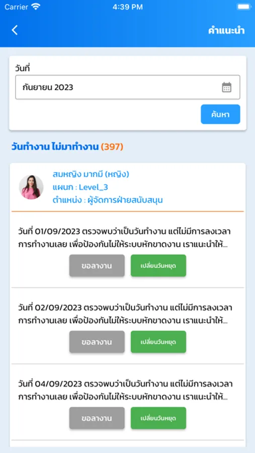 - อนุมัติเอกสาร เช่น การขอโอที การลา แก้ไขเวลา เปลี่ยนกะการทำงาน เปลี่ยนวันหยุด ขอเบิกล่วงหน้า