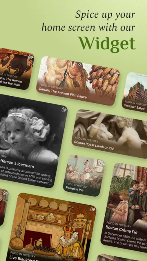 Want to impress your foodie friends with a story they've never heard before? Cooking History features daily articles about medieval banquets, ancient Roman feasts, and traditional recipes from around the world. With our app, you'll discover the fascinating history behind bread, cake, pumpkin pie, and more! And let's be real, it's way more interesting than stalking your ex on Instagram.