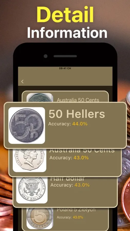 Coin Identifier Coin Checker makes coin identification and valuation easy - just snap a picture of a coin with your phone camera and the app will show you a list of similar coins. Click on the coin to see additional information in the coin library of your phone. Save search results and build your photo collection of coins. A must-have tool for every coin collector and numismatist!