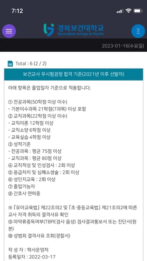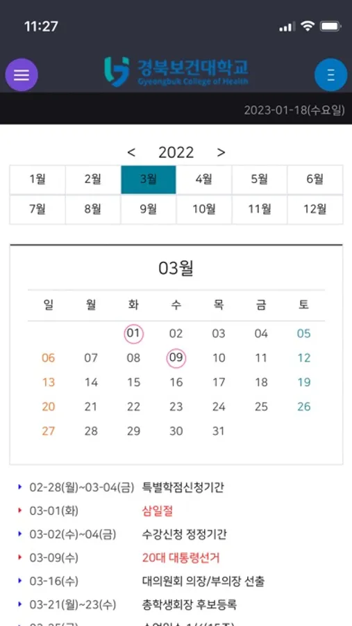 경북보건대학교 WEB/APP 기반의 학생 및 교직원을 대상으로 학사정보 및 커뮤니케이션을 위해 제공하는 솔루션 입니다.