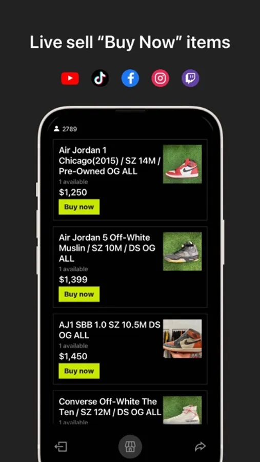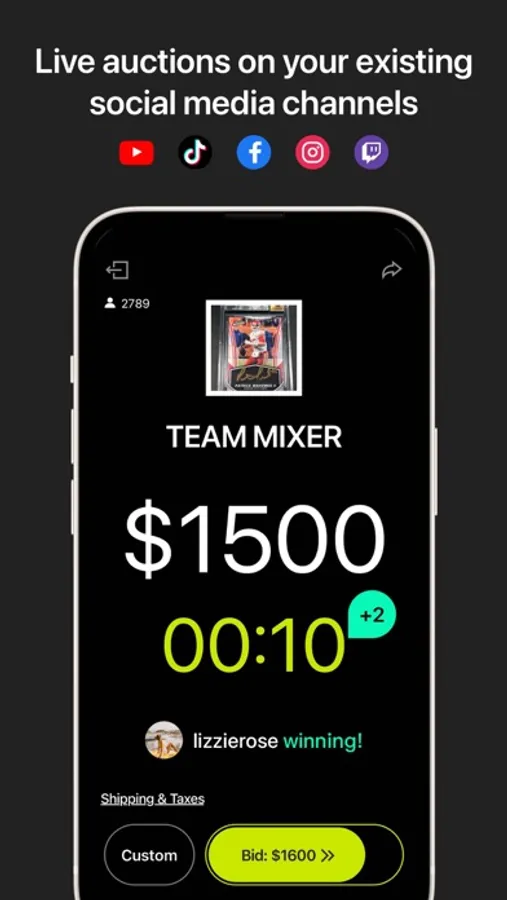 Set your "Auction" or "Buy Now" products to sell on TikTok, Instagram, YouTube, Twitch, Discord, Facebook and even in-person!