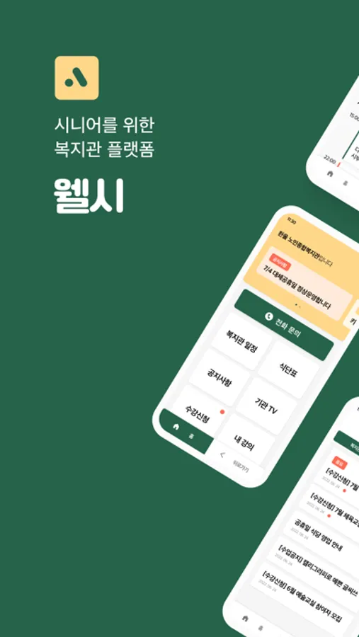 - 언제 어디서나 스마트폰을 이용하여 복지관 소식, 프로그램 안내 및 신청, 식단 등의 내용 확인
