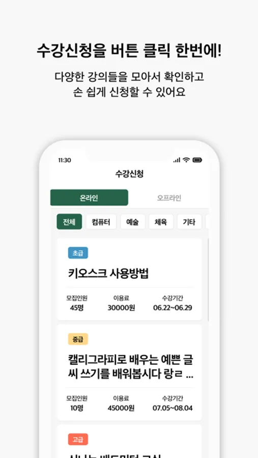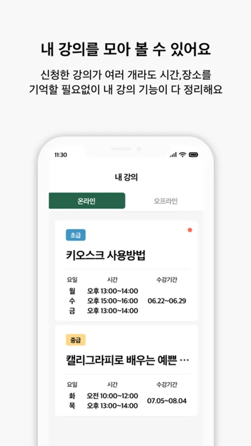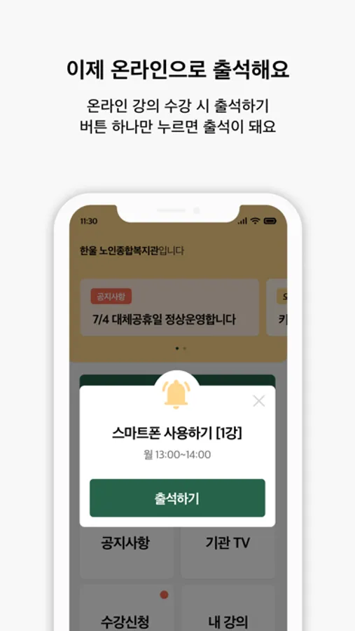 - 수강신청 및 실시간 비대면 강의 수강 등 비대면 복지관 서비스 이용