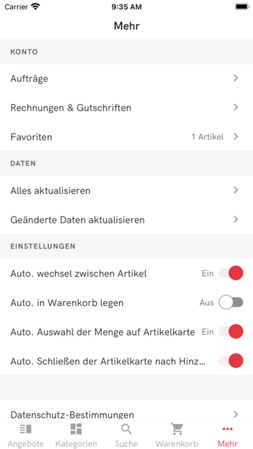 Nar Center iOS-App bietet Kunden die Möglichkeit, Ihre Auftrage online zu erfassen. Die Kunden können auch Ihre Offene Posten ansehen.
