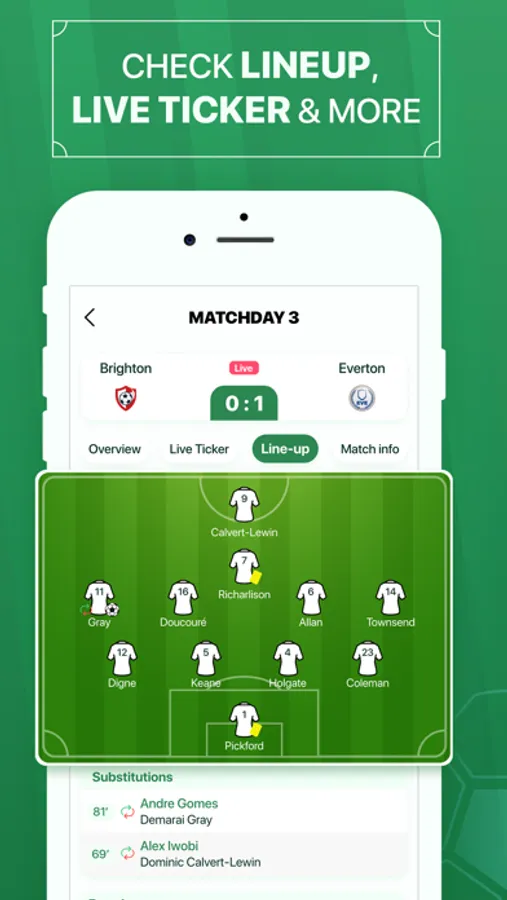 - Team line ups and match stats