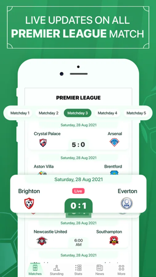 - Live of all team’s matches