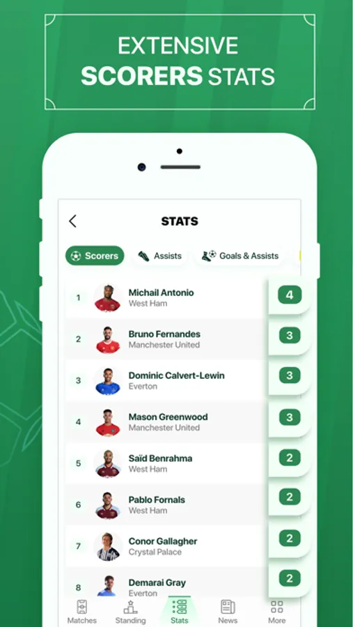 - Match statistics