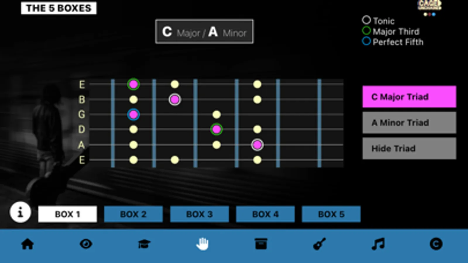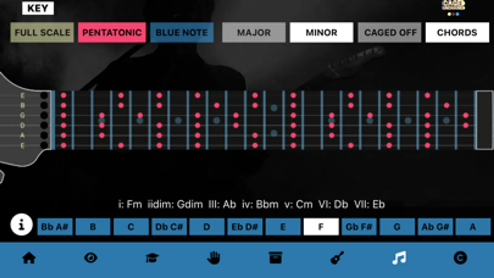 You won’t be finding a list of chords or a specific song or melody on this app, but rather a theoretical and practical reference method that will let you be free to orient yourself to be able to play and improvise in any scale or tone you choose.