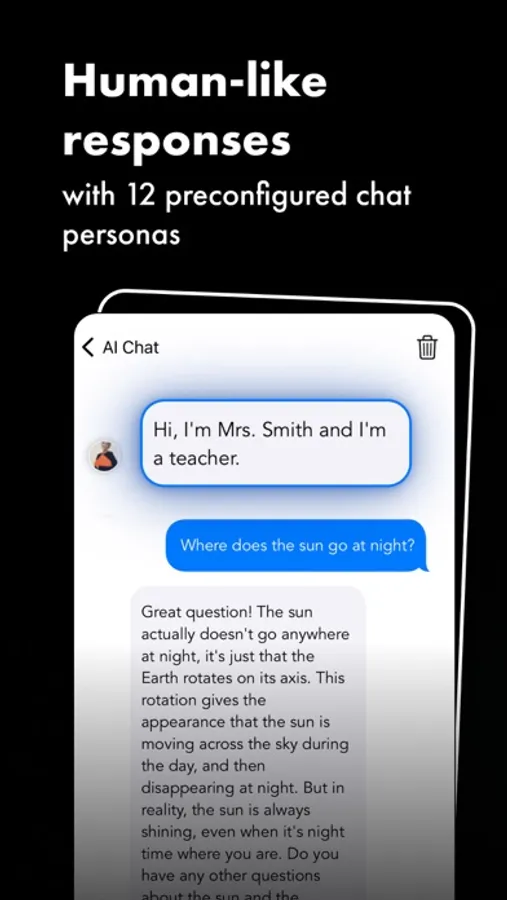 Disclaimer: Please note that the AI model used in this app is a custom built language model that is designed to respond to user input in a conversational format. This app is not affiliated with any external entities or companies, and the language model used in this app is not owned or developed by the creators of this application. While the AI model was trained on a large dataset of human language, it is not perfect and may not always provide accurate or appropriate responses. Users should exercise caution and discretion when using this app, as the responses generated by the AI model may not always reflect the views or opinions of the creators of this application.