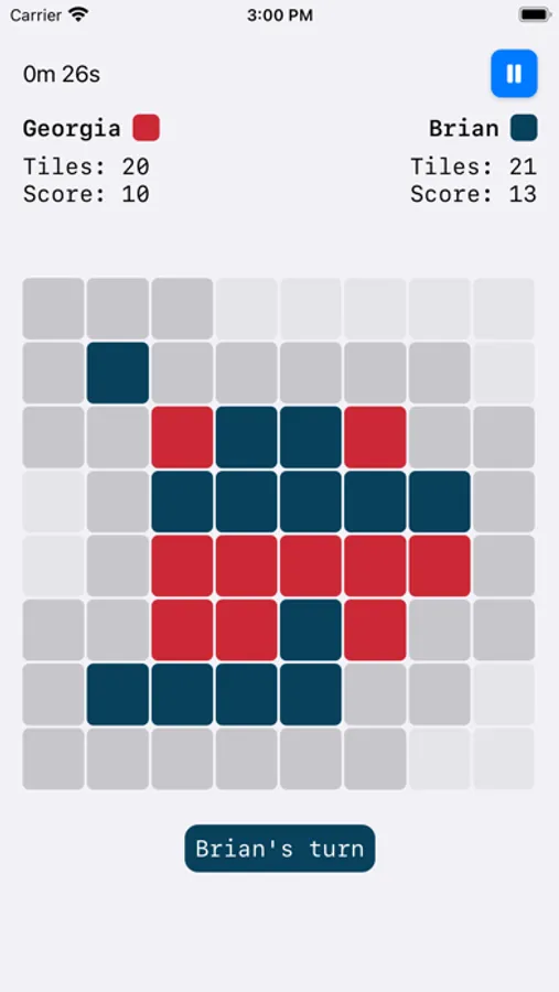 Parille is a two player strategy game, and the aim is to convert as many tiles to be your colour as you can!