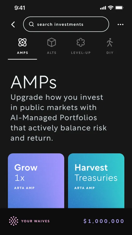AI-Managed Portfolios (AMPs) upgrade your investments in public markets, combining scientific rigor and advanced AI to actively balance risk and return.
