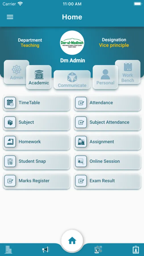 The Dar-ul-Madina offers management tools to run daily operations and provides ease in the daily work schedule to its teachers. This becomes the most important feature for progressing Educational Entity. Dar-ul-Madina Staff App provides effective communication among school administration, parents, and teachers. In this digital world and need of the time is Online learning, which this Dar-ul-Madina Staff App handle tactfully with few clicks are required by Parents to join allocated course or subject Meeting that is created by Staff with few clicks. Dar-ul-Madina Apps provide complete operability to Staff regarding Timetable, Subject Topic’s Progression, and Daily Classwork/Homework Dairy in Academic’s domain. Furthermore in Communication, Dar-ul-Madina Staff App provides important notifications, announcements, and complaints. Following is the complete feature list available in Dar-ul-Madina Staff App.
