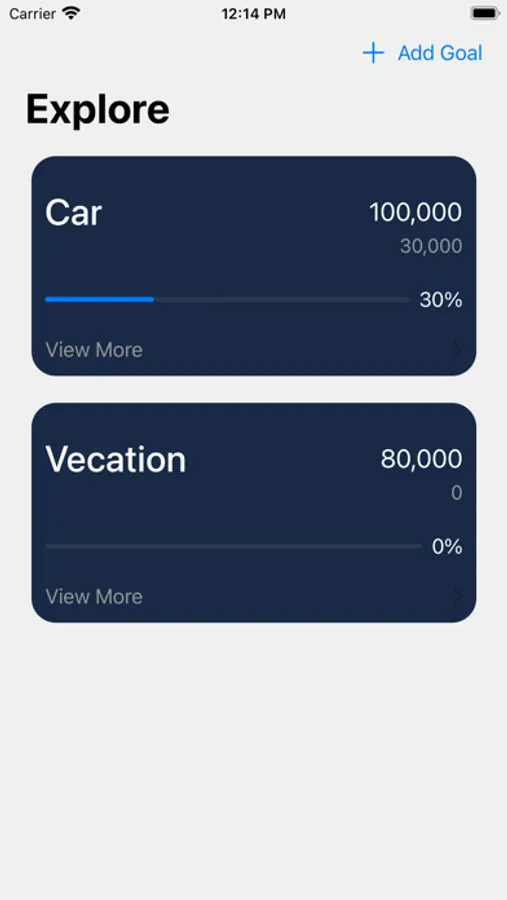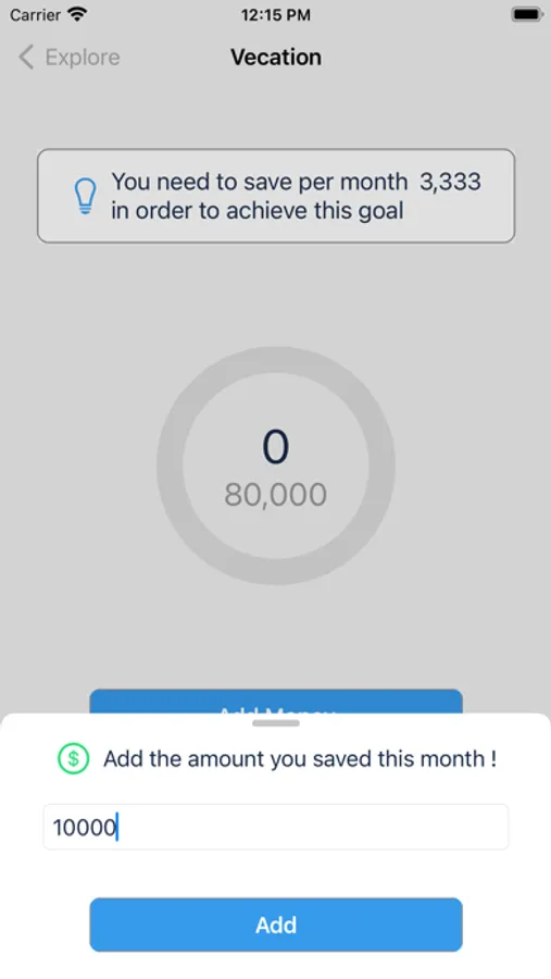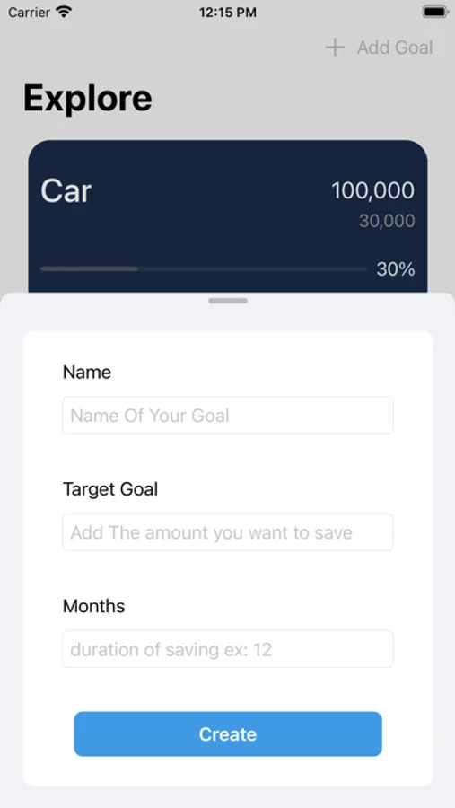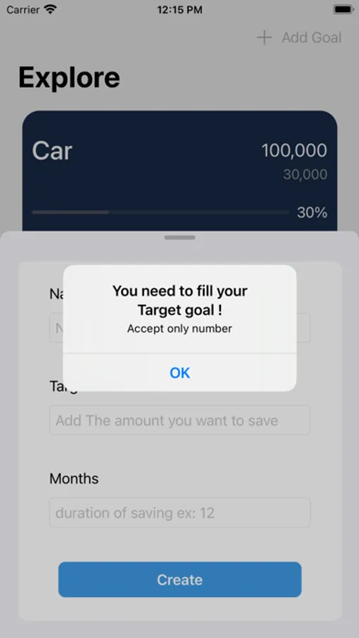The app allow users to add the goal information, name of the goal, months and target amount.