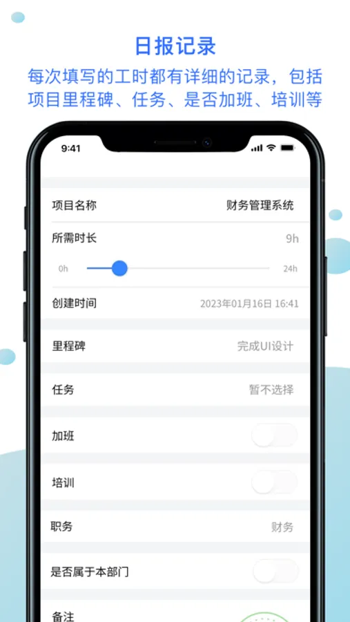 工时汇是一款简单易用的工时记录填报软件,可以让一线员工无论在公司办公场所,还是在客户现场,甚至在路途中,只要接入互联网,都可以通过手机APP随时填报工时记录。