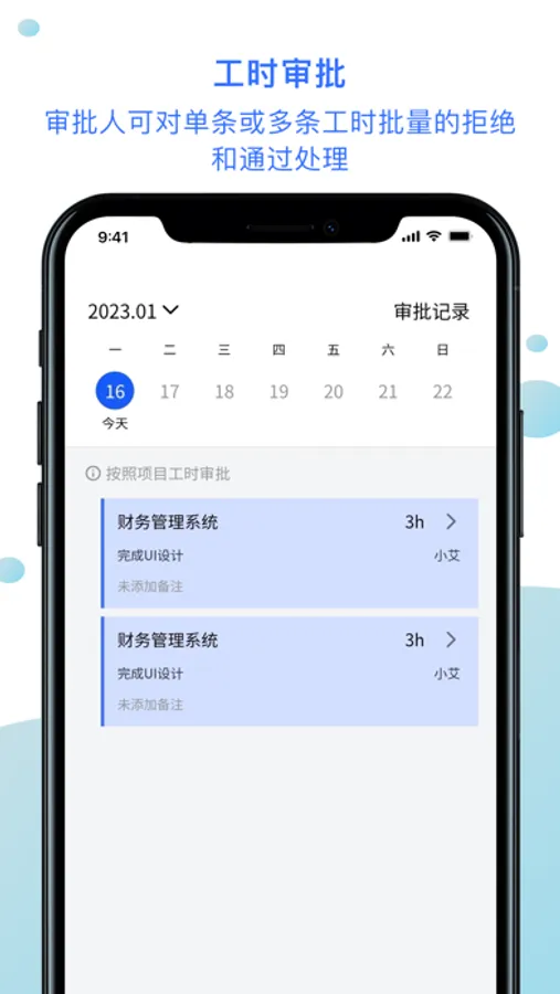 审批人可对单条或多条工时进行批量的驳回和通过处理,也可以单独驳回部分工时,无需全部驳回。