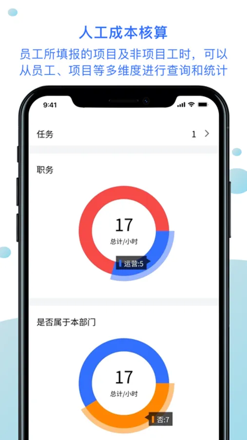它可以实现高效、低成本收集不同项目下每个成员所花费的实际工时(正常工时,加班工时,休假工时等),核算出项目各自的人工成本值。提高企业经营管理水平。