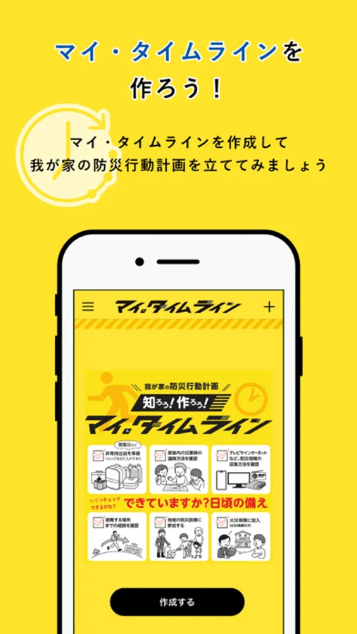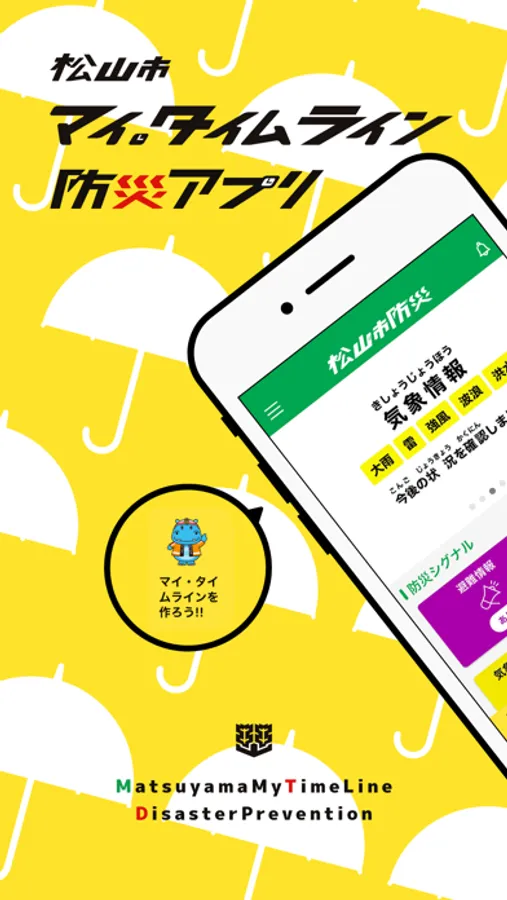 「松山市マイ・タイムライン防災アプリ」は、大雨や台風時のマイ・タイムライン(防災行動計画)を手軽に作成することができます。