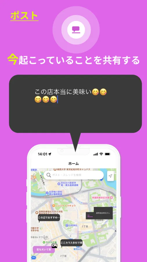 ポストは地図上の好きなところに投稿することができるから、「自分の場所が地図上に表示されてるみたいでなんだかいやだ」