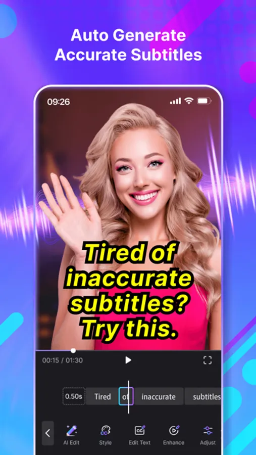 Blink adds auto-captions to your videos, making them more user-friendly. Supports various file types and languages, and lets you choose from trendy caption styles.