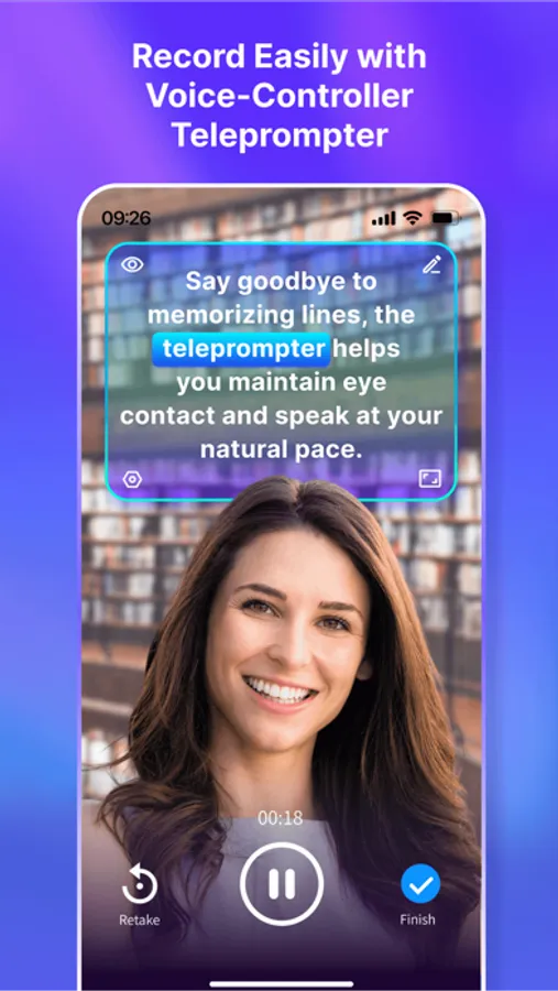 Forget memorizing scripts. Our teleprompter scrolls at your speaking speed, allowing natural delivery and eye contact.