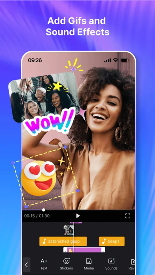 Spice up your videos with emojis, GIFs, and sounds. All it takes is a click.