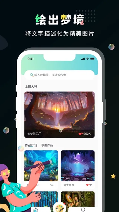 在这里,可以看到各种天马行空的梦境作品,也可以将自己的作品公布给他人观赏。