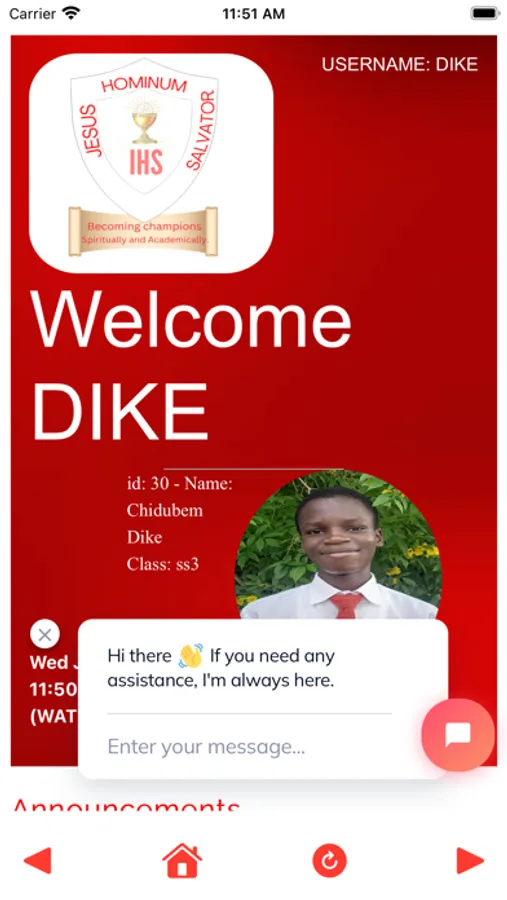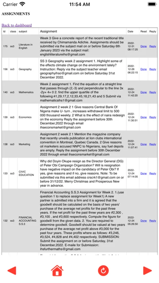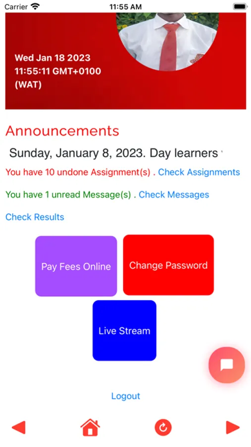 The app is for receiving assignments, checking of results and getting messages from the school's administration.