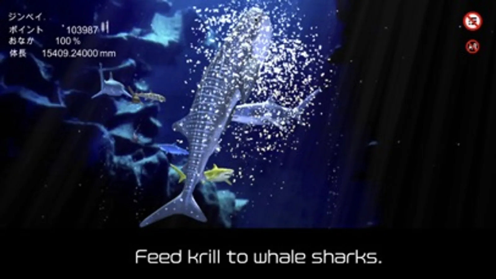 Whale shark feeding has been recreated. Feed krill to the whale sharks. Enjoy watching them eat krill. While the whale shark is eating the krill, you can earn high speed points. You can get points for high speed.