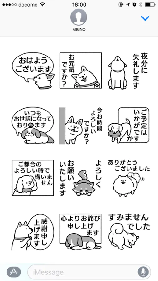 It is a simple sticker that combines a monotone illustration of a dog and honorifics.