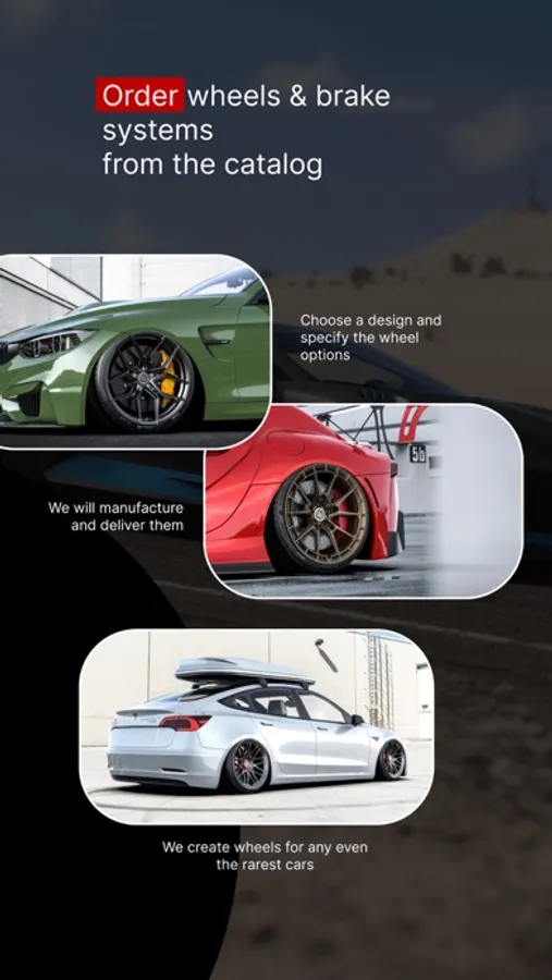 Grandrims App isn't just a mobile store where you can choose and order forged wheels and brake systems. Our app has a unique augmented reality option. Now you can try on up to 500 drive designs on your car. As well as change the color and size of the wheel? add unique accessories and style tires.