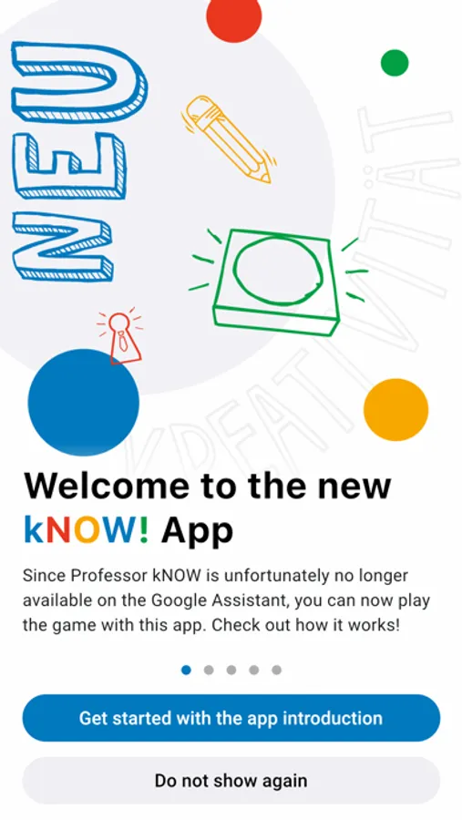 Welcome to "Ravensburger Professor kNOW!", the companion app to the "kNOW!" board game. This app replaces the Google Assistant Action on the Google Smart Speakers, which will be or was discontinued by Google at the end of June 2023.