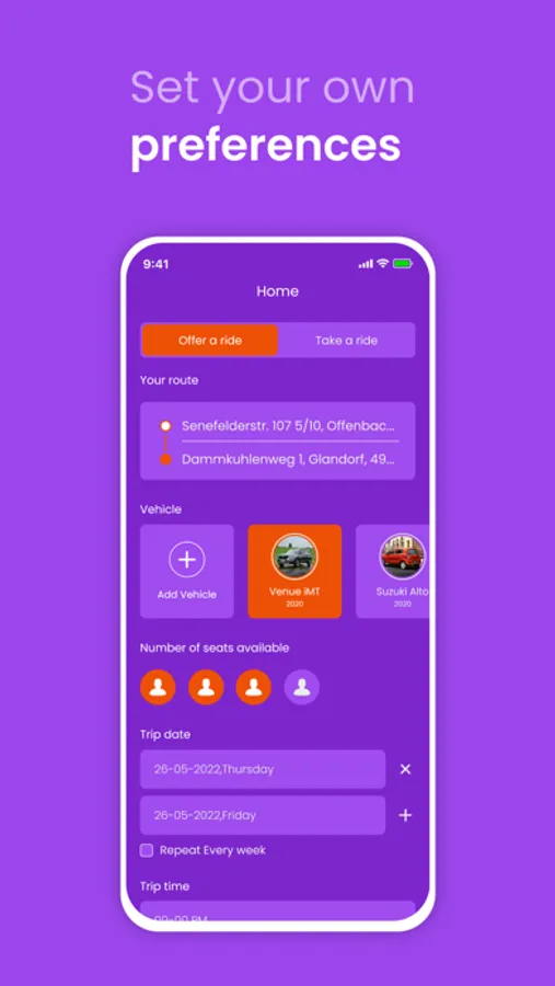 With our app, you can easily search for carpools going to your destination, or create your own carpool if you're willing to offer a ride. Our advanced search filters allow you to specify preferences such as the time of day, number of passengers, and even on the basis of your own preferences.