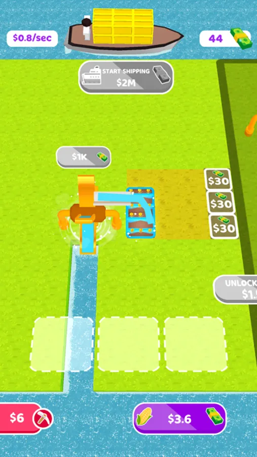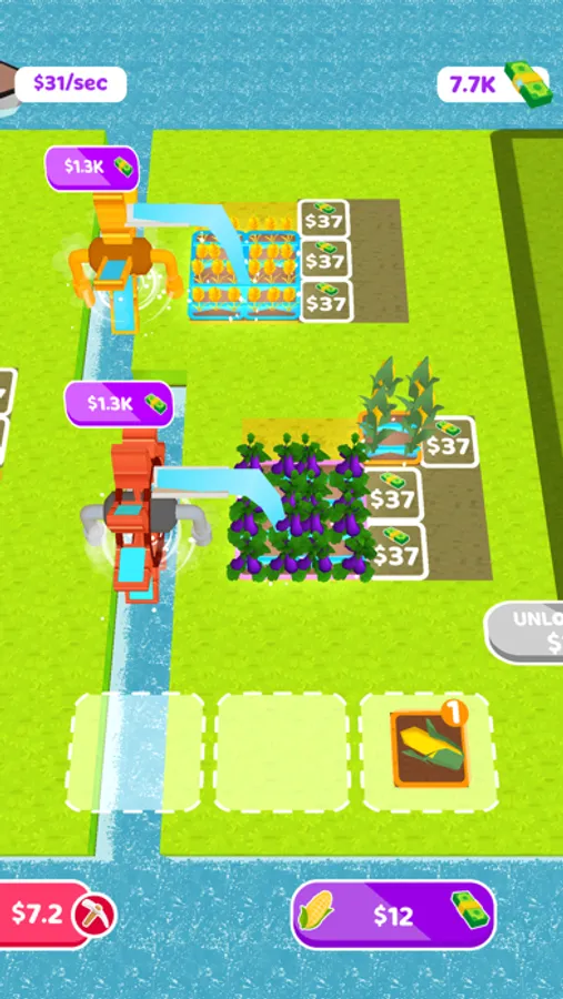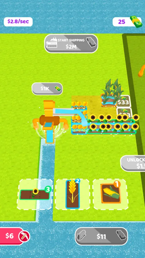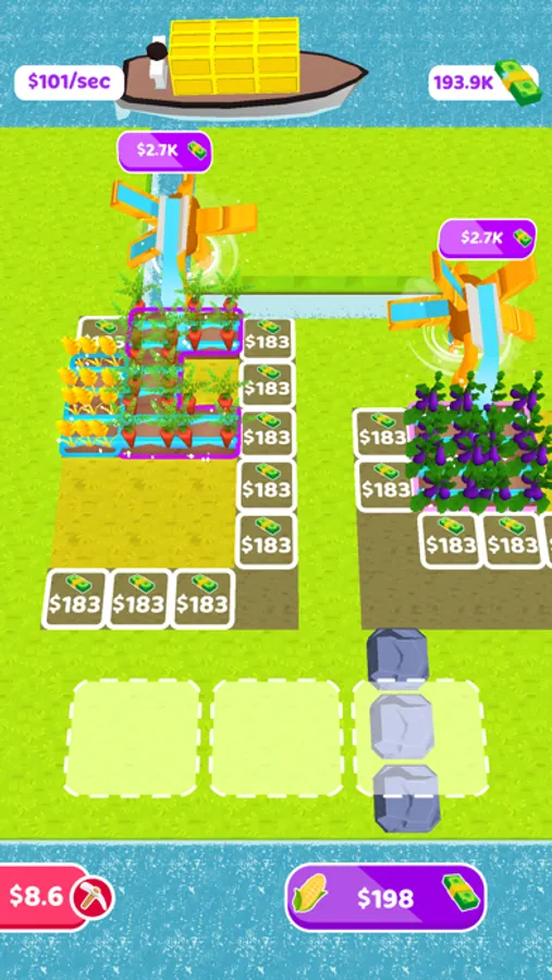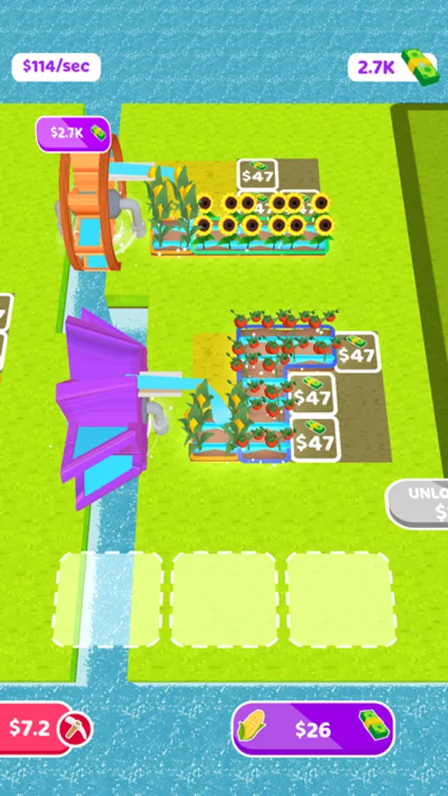 Manage water and grow your vegetables! Dig around, steer the water and place your fields. Enjoy the scenery while the fields save you money.