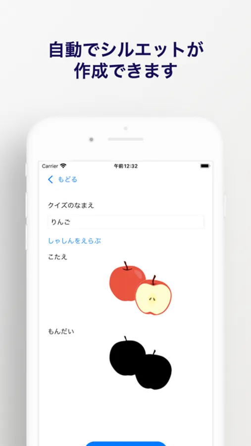 クイズの答えにしたい写真を選ぶと自動でシルエット画像が作成されます。