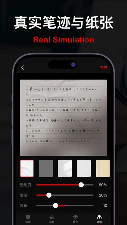 -多种纸张材质与光影滤镜,自定义冷暖与暗度