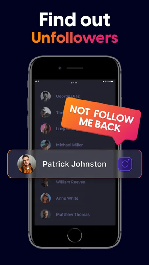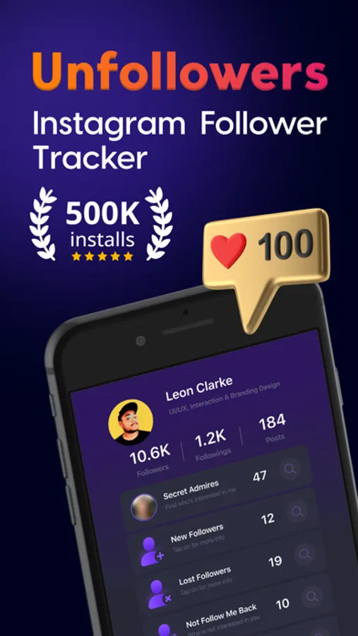 Our app is the ultimate tool for managing and growing your Instagram presence. With our app, you'll be able to monitor your followers and stay informed about who's interacting with your profile. Get alerts for new subscribers, secret admirers, and unsubscribers so you can stay on top of your audience's behavior.