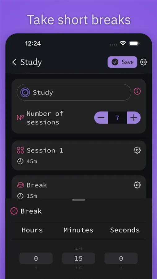 How it works? Break down your complex daily tasks into timed sessions, take a short break at the end of each session, start the next one, get it all done!