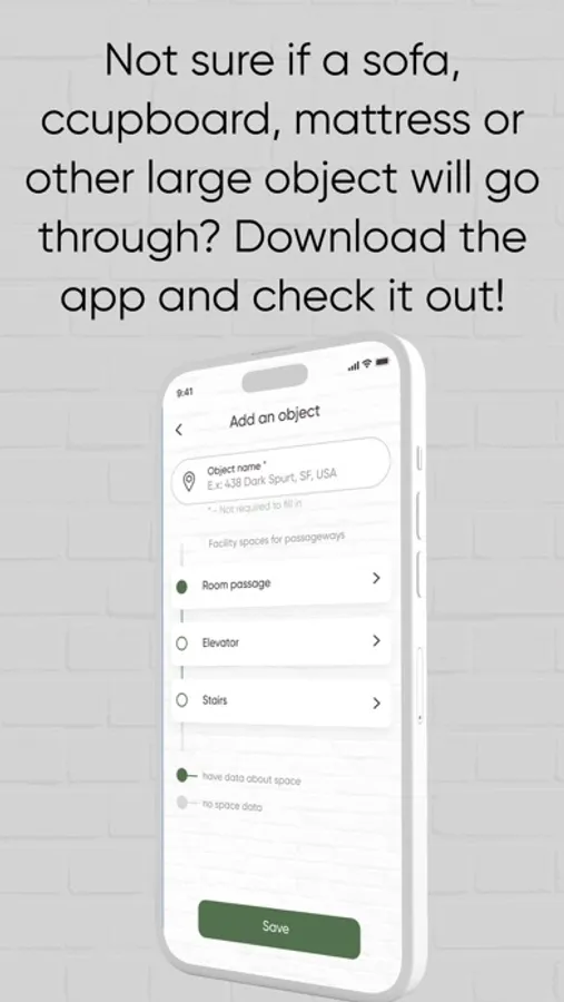This mobile app is able to effectively calculate the possibilities for carrying large-sized furniture and equipment through various spaces (rooms), taking into account their overall features. Calculate all the risks before ordering a furniture delivery when moving or buying it in a furniture store.
