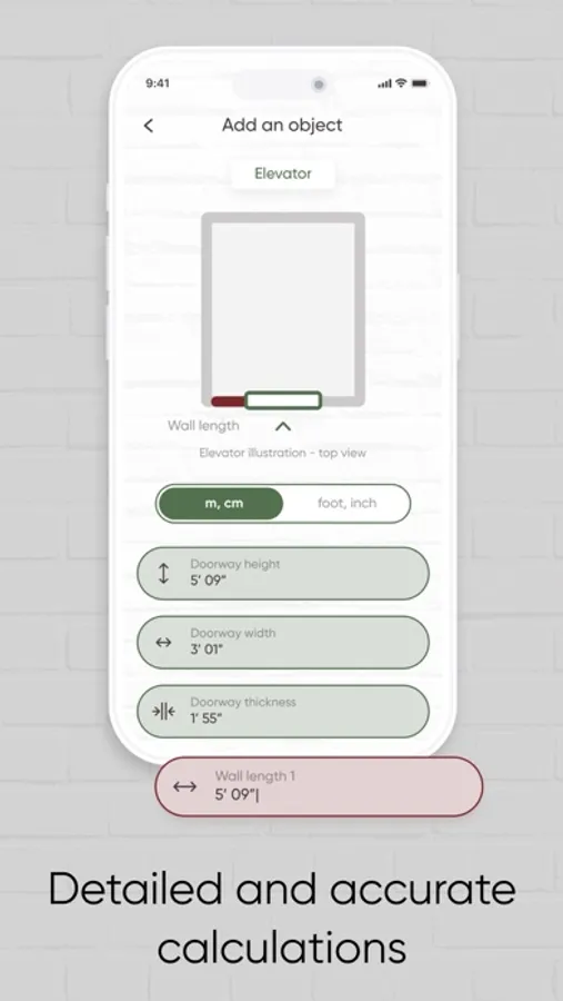 Measure room, write down all distance measures. Measure angle of the room with a digital tape measure or a tape measure.Measure the carried object. The app will do the rest on its own.