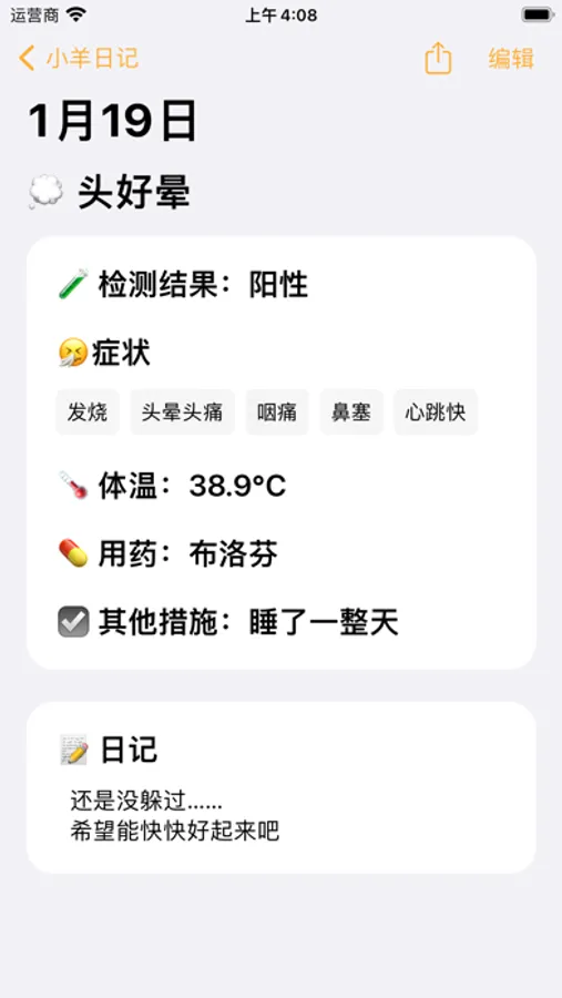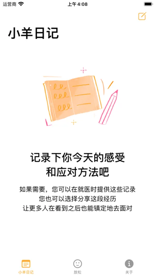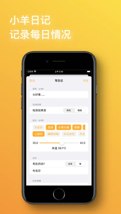 “小羊日记”App够帮助您记录患病期间的感受、症状与应对措施,以便在需要就医时辅助治疗;或将您的经历分享给他人,让更多人在患病之后也能镇定面对。其他的放松小功能也能够一定程度上帮助您缓解焦虑。