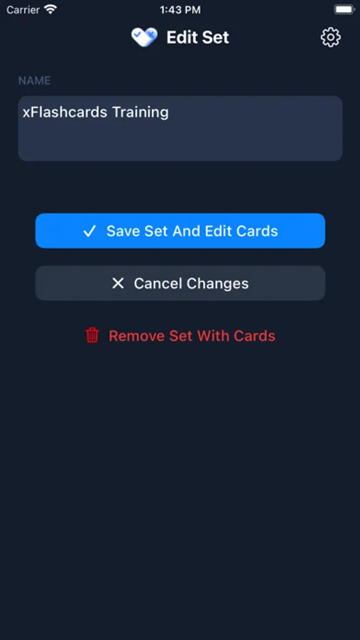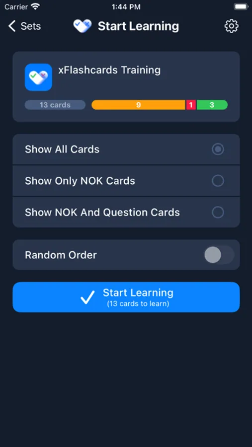 - Settings when starting learning mode for a set of cards