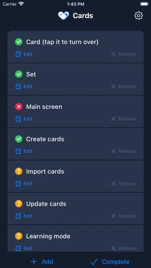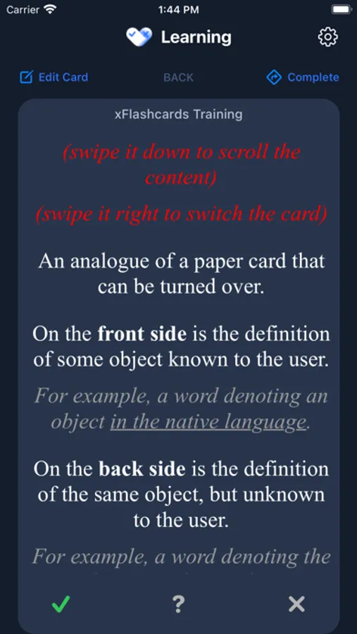 - Mark flashcards as learned / NOT learned in learning mode