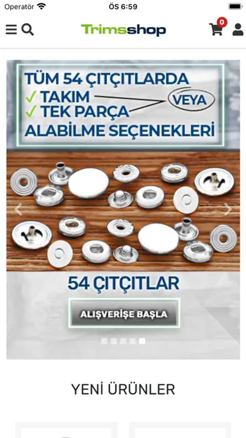 Trimsshop mobil uygulaması ile tekstil aksesuarları kuşgözü, düğme, klikıt çıtçıt, pantolon kancası, kot düğmesi vb. ürünleri satın alabilirsiniz.