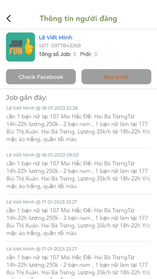 Nếu cần hỗ trợ thông tin về JobFun, hãy nhắn tin cho chúng tôi qua Fanpage: