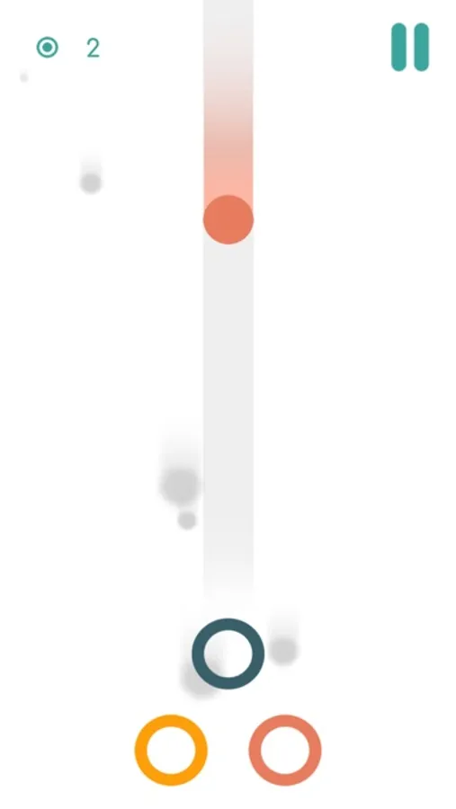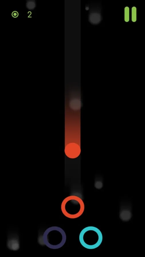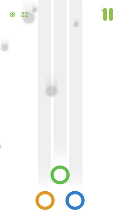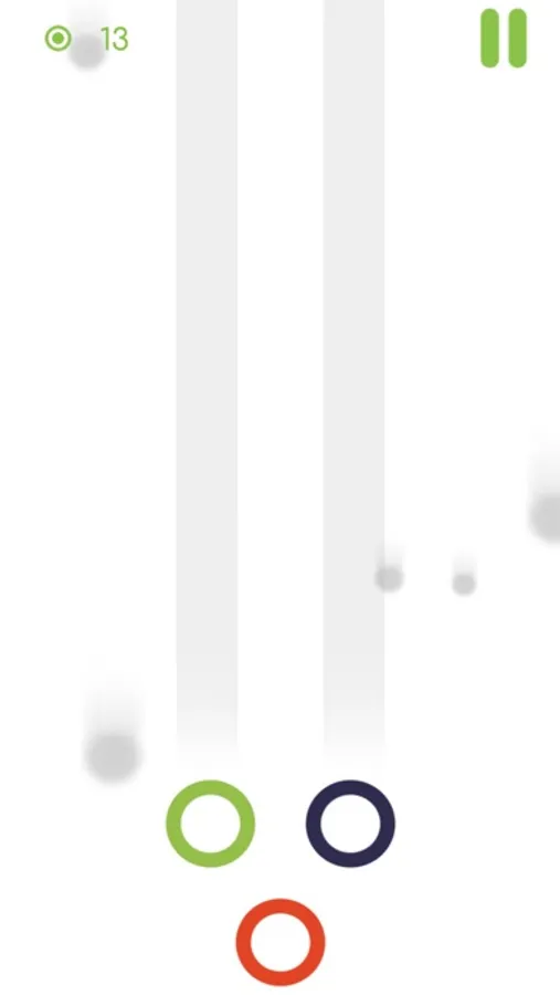 As you progress through the game, the triangle will rotate so that the tip points downward, and two rings will be at the top. Now, circles will fall on two paths at the same time, and you will have to rotate the triangle to catch them. After a while, the triangle will rotate again so that the tip points upward and three rings will be at the top, and circles will fall on three paths.